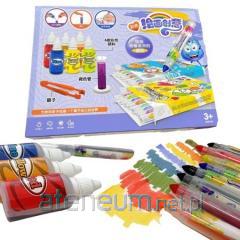 farba użyta w markerach akrylowych to mieszanina materiału wiążącego, rozpuszczalnika oraz pigmentów w formie bardzo płynnej o niskiej lepkości