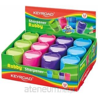 Temperówka KEYROAD Robby, aluminiowa, podwójna, z pojemnikiem, pakowane na displayu, mix kolorów