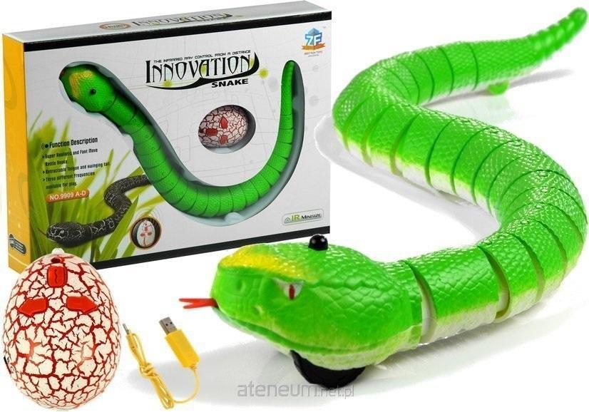 Wąż sterowany pilotem na podczerwień Zielony Twoje dziecko uwielbia robić psikusy domownikom i kolegom? A może tym razem to Ty szukasz czegoś, czym go zaskoczysz? Wybierz zdalnie sterowanego realistycznego węża, który porusza się, wystawia język i świeci. Twój maluch na pewno będzie zadowolony! Interaktywna zabawka z pewnością posłuży do tworzenia wielu nowych zabaw, rozwijając tym pomysłowość i kreatywność Twojego dziecka. W zestawie znajdziesz węża w kolorze zielonym, który aż do złudzenia przypomina prawdziwego gada, pilot na podczerwień przypominający stare, popękane jajo, instrukcję obsługi oraz kabel zasilający USB i 3 baterie AG13, które są konieczne do uruchomienia pilota. Całość zapakowana jest w pudełko dokładnie zabezpieczające wszystkie elementy wchodzące w skład tego egzotycznego zestawu. Zielony wąż sterowany jest świetnie ucharakteryzowanym pilotem-jajkiem, posiadającym trzy przyciskami - umożliwia to szybkie poruszanie się węża po linii litery S do przodu i na boki, a także zatrzymywanie się i poruszanie ogonem - wszystko to w bardzo realistyczny dla niego sposób. Zasięg pilota obejmuje około 10 metrów, co na pewno pozwoli na udaną zabawę z rodziną i przyjaciółmi w całym mieszkaniu. Zabawkowy wąż ma około 38 cm długości, dzięki czemu Twój maluch z powodzeniem wystraszy niejedną osobę! Po wewnętrznej stronie interaktywnego węża umiejscowione są kółka, pozwalające na zabawę sterowanym gadem na różnych powierzchniach - między innymi na podłodze, kaflach czy dywanie. Wymiary elementów: - długość węża: około 40 cm, - pilot: około 8 cm x 6 cm. Wymiary opakowania: 31 cm x 22 cm x 6 cm.
