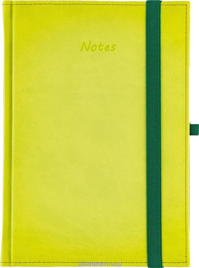 Miękka, przyjemna w dotyku oprawa wykonana z materiału pokryciowego Vivella. Notes zamykany na gumkę, posiada również gumkę na długopis. W górnej części okładki tłoczenie napisu notes. Drukowany na papierze białym, zadruk w kratkę; bloki szyte nićmi; kapitałka i tasiemka białe; posiada na każdej stronie miejsce na wpisanie daty. Pakowany pojedynczo w woreczek foliowy.