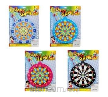 Magnetyczna tablica wraz z 3 rzutkami do gry w darty. Produkt zapakowany w kartonowa podstawkę z przezroczystym kloszem. Produkt występuje w kilku wersjach kolorystycznych, wybierany losowo. Cena dotyczy jednej sztuki.