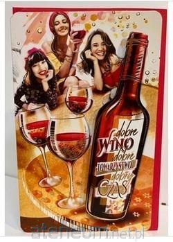 Elegancki, zdobiony karnet okolicznościowy z kopertą i życzeniami w środku.Karnet AB+ butelka Serdeczne życzenia, wino UP08