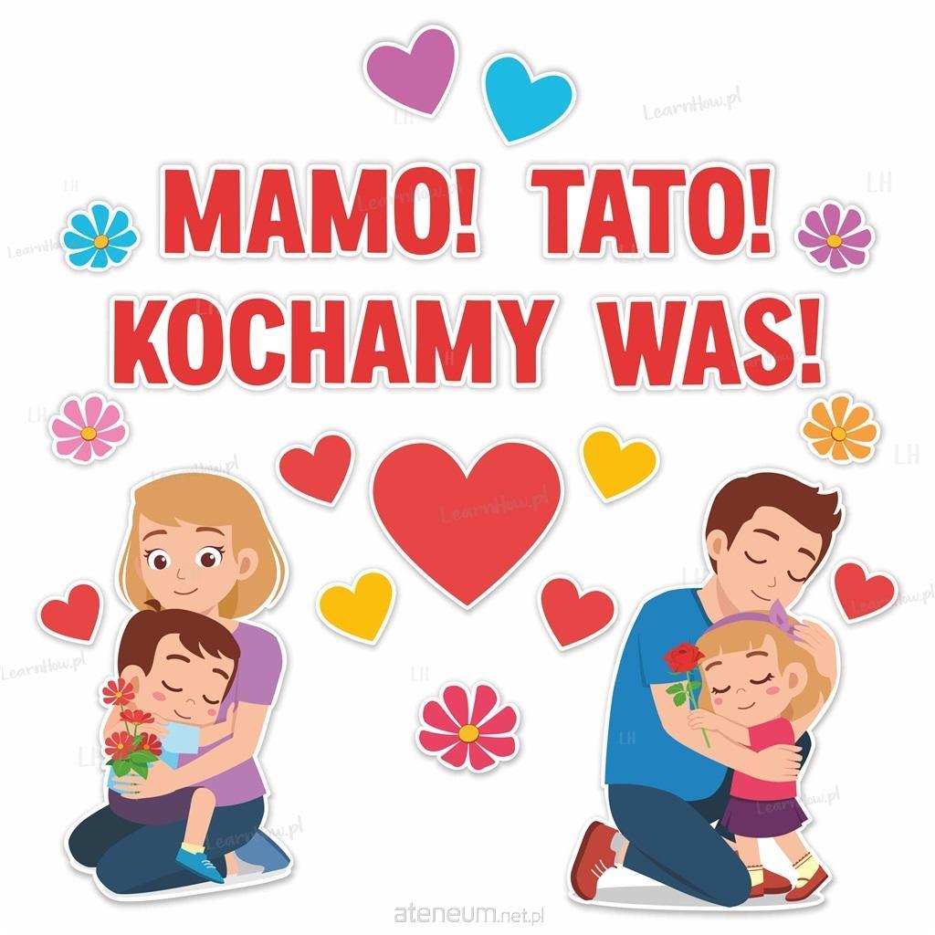 Zestaw składa się z 2 dużych postaci rodziców z dziećmi, 9 serduszek, 5 kwiatków i 4 słów.