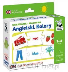 Na tropie angielskich słówek to wyjątkowe połączenie picture booka ze słownikiem, jednak ilustracje odgrywają tu główną rolę i nie są jedynie graficznym przedstawieniem słówek. Angielskie wyrazy, zwroty i proste zdania pojawiają się na planszach na zasadzie skojarzeń, co sprawia, że czytelnik przyswaja je w naturalny i intuicyjny sposób. Słownictwo dotyczy m.in. liczb, kolorów, pór roku, środków transportu, zabawek, rodziny, dzikich i udomowionych zwierząt, ubrań, emocji oraz części ciała.
