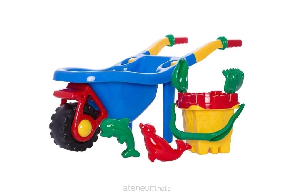 Taczka z kompletem do piasku "Zamek" - idealna zabawka dla młodych ogrodników i miłośników zabaw na świeżym powietrzu. Wykonana z trwałych materiałów, zapewnia długi okres użytkowania. Zawiera wiaderko "Zamek" z sitkiem, foremki w kształcie delfinków i foczki, łopatkę oraz grabki - wszystko, co potrzebne, by zbudować piękny zamek z piasku lub cieszyć się zabawą w piaskownicy. Dzięki taczce, akcesoria są łatwe w przechowywaniu i przewożeniu. Idealna do zabawy na plaży. Rozwijaj wyobraźnię i kreatywność dziecka, zachęcając je do spędzania czasu na świeżym powietrzu w zabawie z rówieśnikami.