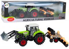Traktor z broną na napęd zielony