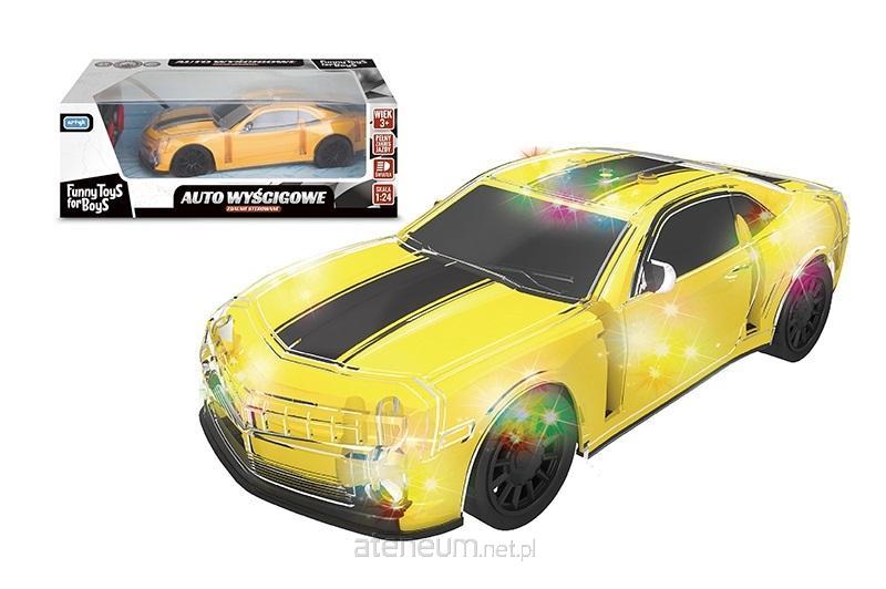 Auto 19 cm., pilot, funkcje: pełen zakres jazdy, migające, kolorowe podświetlenie całej karoserii, działające przednie światła, ustawianie zbieżności kół, gumowe opony, wym. opk: 26 x 12,5 x 9 cm., baterie: auto 3 x AA 1,5V pilot: 2 x AA 1,5V brak w zestawie, 3+