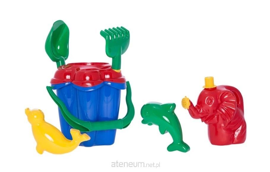 W zestawie znajduje się wiaderko Kwiatek z sitkiem, 2 foremki delfinek i foczka, łopatka, grabki oraz konewka Słoń. Nasz dzieciak na pewno nie będzie się nudził na plaży. A kiedy zabraknie mokrego piasku, Słoń z pewnością nam w tym pomoże.
