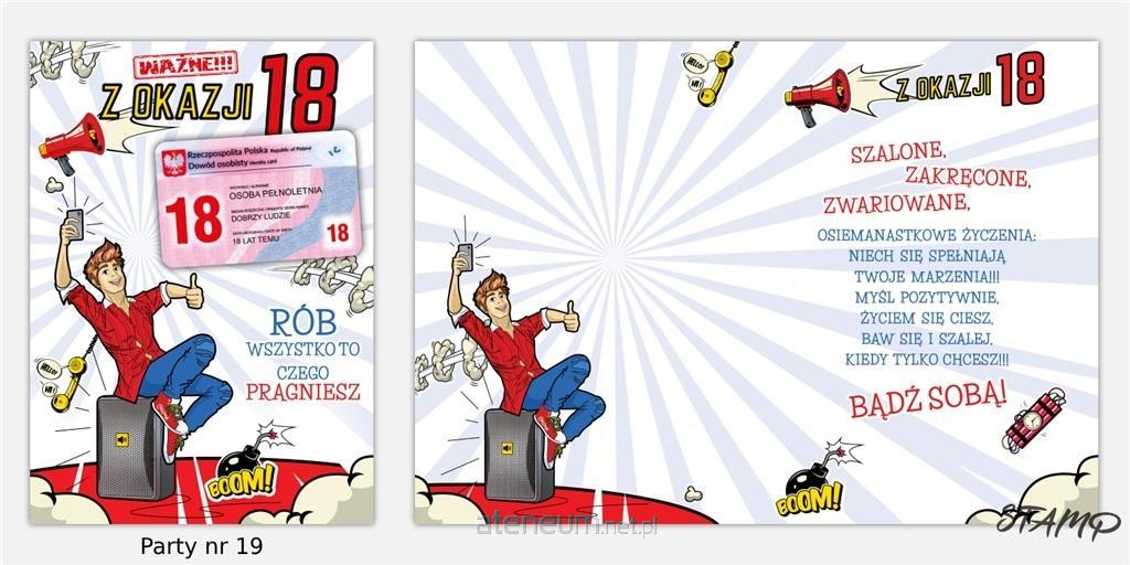Karnet Party naklejany B6+koperta Urodziny 18 wz09