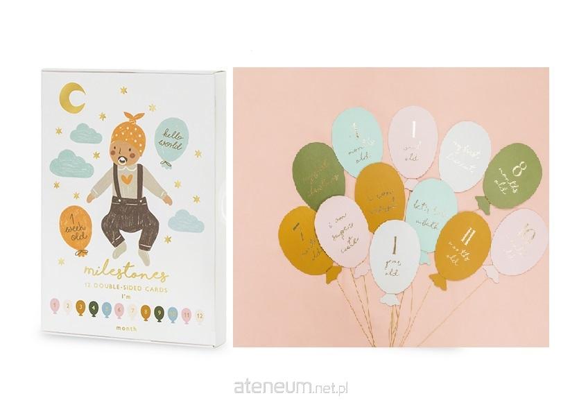 Karty do zdjęć Baloniki, mix kolorów, zestaw zawiera 12 kart w kształcie baloników z metalizowanym nadrukiem oraz 300 cm złotego sznurka, wymiar jednej karty ok. 11.5 x 17 cm.