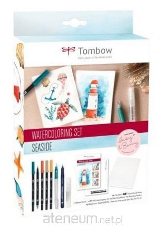 Zestaw Watercoloring Set Seaside zawiera przybory artystyczne marki Tombow do wykonywania akwarelowych ilustracji wformacie pocztówkowym. Artystki May & Berry w instrukcji dołączonej do opakowania pokazują, jak za pomocą produktów zawartych wzestawie stworzyć obrazki zmotywem morskim.