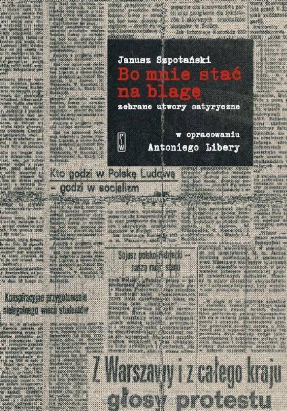 Co ważne, Bo mnie stać na blagę ukazuje się w PIW-e, z którym Szpotański był związany jako redaktor w latach pięćdziesiątych i sześćdziesiątych dwudziestego wieku, i w którym (z kilkuletnim poślizgiem) zadebiutował jako krytyk literacki opracowaniem pism Karola Irzykowskiego. Co ważniejsze jednak, komplet utworów satyrycznych Szpota ukazuje się w szczególnej chwili historycznej. Na Ukrainie toczy się okrutna wojna, rozpętana przez barbarzyńską Rosję, a na Zachodzie szaleńcza wojna kultur, osłabiająca europejskiego ducha. Oba zjawiska zostały proroczo wręcz kasandrycznie przepowiedziane przez Autora w Carycy i zwierciadle oraz w Bani w Paryżu. Genialny Szpot jak zwano go w środowisku peerelowskiej opozycji, a później w szerokich kręgach Solidarności zawsze tak wyczulony na powiewy Historii i bezbłędnie wyczuwający sytuację polityczną, oto zza grobu raz jeszcze daje o sobie znać jako swoisty barometr czasu, jako szyderczy, ale i pełen goryczy Stańczyk.