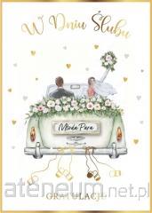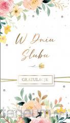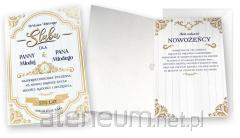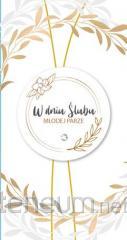 Kartka muzyczna na Ślub MP-0037. Kartki z serii Simfonica wyróżniają się nie tylko wielkością i pięknym wzorem, ale także niespodzianką w środku - po otwarciu kartki uruchamia się znane muzyczne nagranie "Cudownych rodziców mam z repertuaru Urszuli Sipińskiej Wymiary karnetu po złożeniu: 15cm x 22,5 cm, zdobiony w zależności od wzoru złotą folią lub cholograficzną. Każda kartka posiada życzenia w środku i koperte.