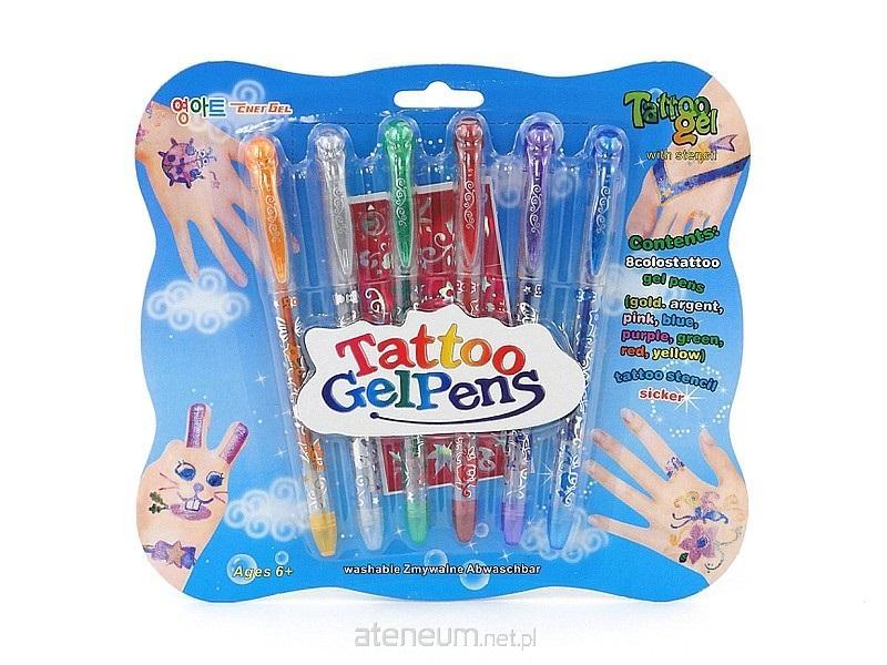 Długopisy kolorowe do tatuaży, 6 kolorów, brokatowe.