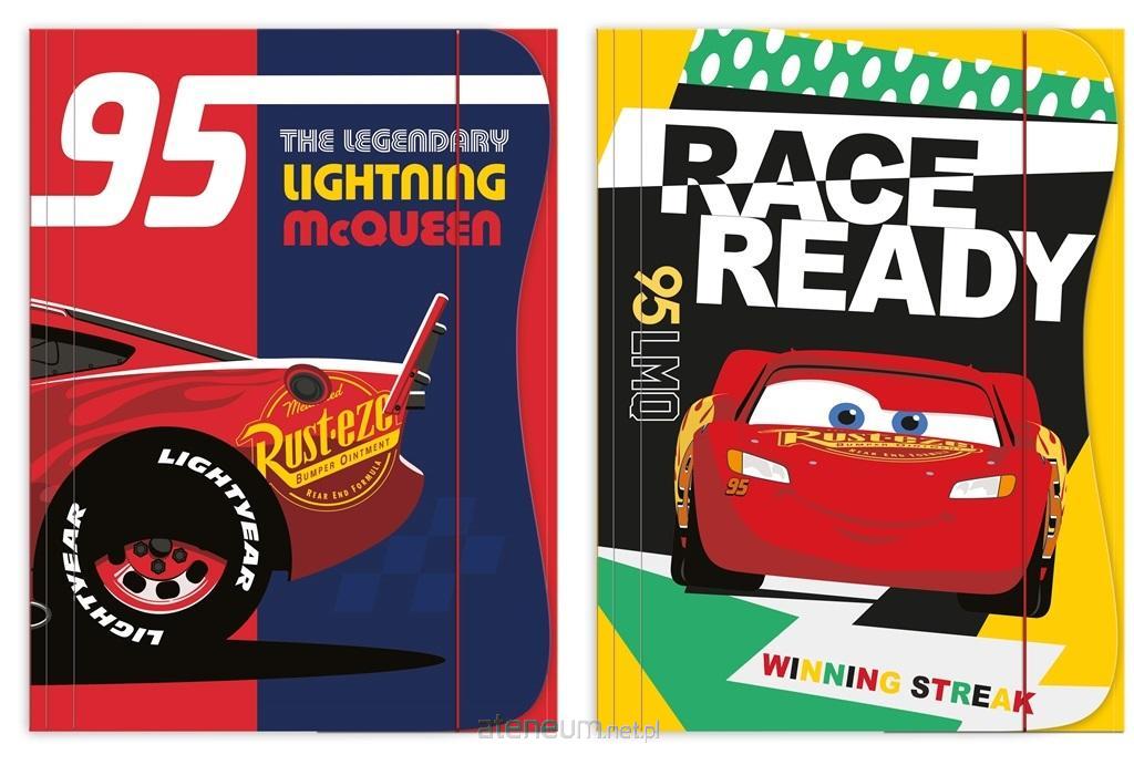 Teczka formatu A4 wykonana z grubego papieru. Zadrukowana z zewnatrz oraz wewnątrz. Wyposażona w gumkę wzdłuż długiego boku. Posiada trzy wewnętrzne klapki zabezpieczające dokumenty przed wypadnięciem. Przednia część teczki wycięta w fantazyjny kształt. Motyw z serii Cars. Dostępna w 2 wzorach.