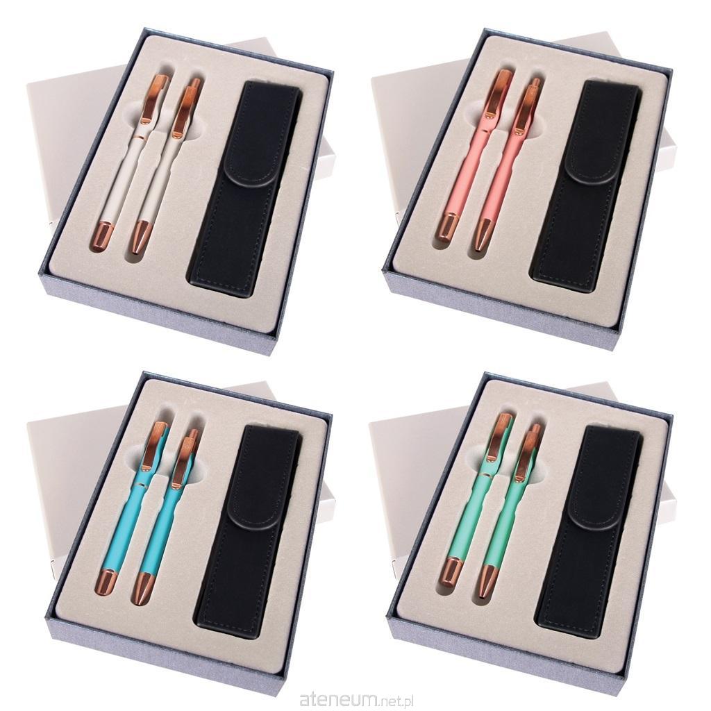 Model zestawu piśmiennego MASTER w atrakcyjnej kolorystyce ze złotymi wykończeniami. Kolekcja obejmuje pióro wieczne ze stalówką irydową oraz długopis. Pióro wieczne ze stalówką irydową zasilane standardowymi nabojami atramentowymi. Długopis posiada pstrykany system wysuwania wkładu wielkopojemnościowego typu Zenith. Zestaw zapakowany jest w etui prezentowe wraz z piórnikiem z eco skóry - idealne na prezent.