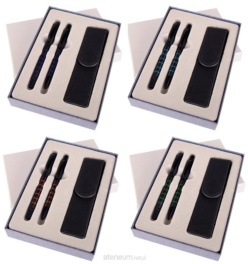 Model zestawu piśmiennego DORIAN w ponadczasowej, czarnej kolorystyce z kolorową kratą. Kolekcja obejmuje pióro wieczne ze stalówką irydową oraz długopis. Pióro wieczne ze stalówką irydową zasilane standardowymi nabojami atramentowymi. Długopis posiada pstrykany system wysuwania wkładu wielkopojemnościowego typu Zenith. Zestaw zapakowany jest w etui prezentowe wraz z piórnikiem z eco skóry - idealne na prezent.