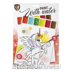 Maluj wodą! Kształty, kolory i obrazy pojawią się za każdym pociągnięciem pisaka. Dołączony do książki pisak wystarczy napełnić wodą i można już rozpocząć zabawę - na zwilżonych mokrym pędzelkiem stronach pojawią się kolorowe ilustracje ze znanych bajek. Znikną, kiedy strona wyschnie. Książką można bawić się wiele razy. Po zabawie należy wylać wodę z pisaka i schować go do opakowania. Dodatkową atrakcją są zamieszczone na kartach: tekst bajki oraz zagadki.