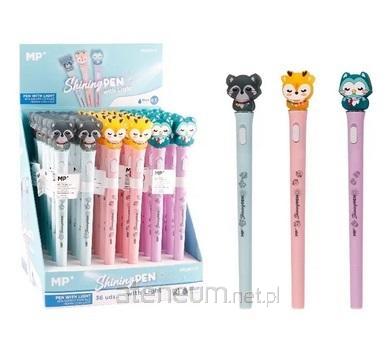 Świecący długopis niebieski 0,7mm. Opakowanie zbiorcze zawiera 36 sztuk. Mix wzorów.
