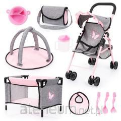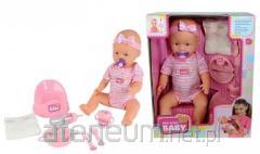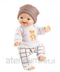 Lalka jest ubrana w fuksjową, pikowaną piżamkę z kapturem zakończonym uszkami. Dodając odrobinę elegancji do ubranka dziewczynki przyszyto kolorową kraciastą kokardę. Kiedy jest zmęczona kładzie się na łóżku, aby napić się z butelki na swojej ślicznej, kraciastej poduszce i ciepłej polarowej kołderce. Cudownie ubrana i zaprojektowana lalka z pewnością może służyć do odgrywania roli dziecka. Wszystkie elementy kompletu można zdjąć, dzięki czemu nasza pociecha nabiera wprawy w przebieraniu i uczy się codziennych czynności, które będą towarzyszyć w przyszłym życiu.