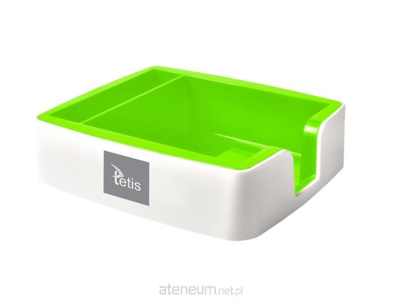 Wykonany z tworzywa sztucznego organizer. Antypoślizgowa podstawa. Pojemność wizytówek: 50 sztuk. Pojemność karteczek: 200 sztuk. Maksymalny rozmiar karteczek: 90x90 mm