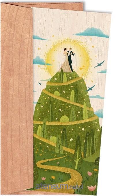 Karnet drewniany C6 + koperta Kobieta z bukietem