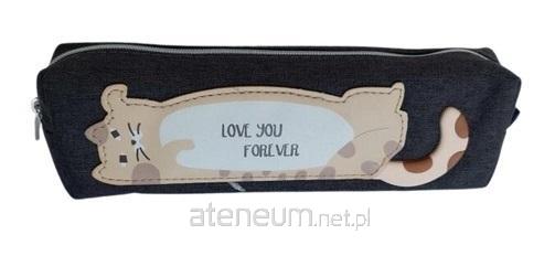 Piórnik z naszywką kota, zamykany na zamek z jedną komorą. Doskonale nadaje się do szkoły.