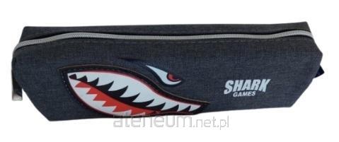 Piórnik z naszywką rekina, zamykany na zamek z jedną komorą. Doskonale nadaje się do szkoły.