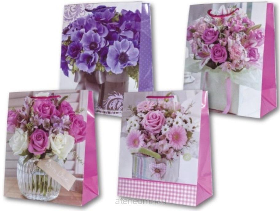 Torebka ozdobna laminowana PL-6 średnia 68 bukiety, mix wzorów, wzór wysyłany losowo.