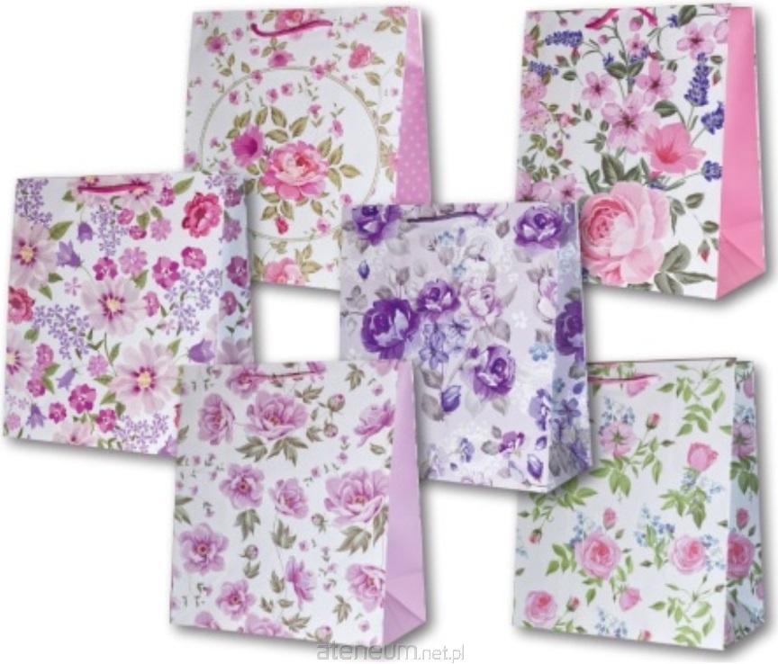 Torebka ozdobna laminowana PL-6 średnia 68 bukiety, mix wzorów, wzór wysyłany losowo.
