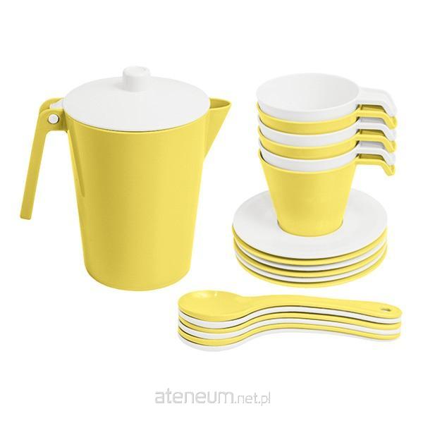 Serwis kawowy z serii Toys in Trends w kolorze żółto-biało-szarym to niezastąpiona zabawka dla każdego dziecka, które lubi bawić się w odgrywanie ról. Idealnie nadaje się na kameralne spotkanie na herbatkę dla 6 osób, a mała gospodyni będzie mogła w zabawny sposób nauczyć się zasad etykiety i nakrycia stołu. Zestaw składa się z 19 elementów: dzbanka, 6 filiżanek, 6 talerzyków, 6 łyżeczek. Zestaw jest starannie wykończony i bezpieczny w użytkowaniu - naczynia są dopuszczone do kontaktu z żywnością, można używać ich w kuchence mikrofalowej i myć w zmywarce.