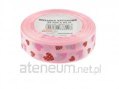 Wstążka satynowa w kropki rozmiar: 6 mm x 22 m kolor: różowy