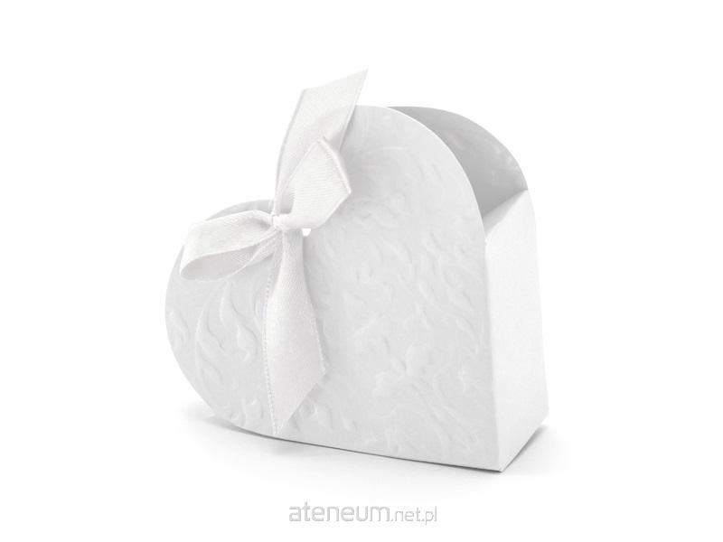 Pudełeczka Serduszko wykonane z papieru w kolorze białym, idealne na prezenciki dla gości, wymiary po złożeniu 10x9x3 centymetry.(1 op. / 10 szt.)