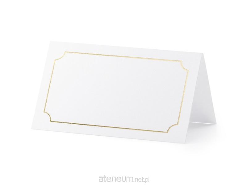 Wizytówki na stół wykonane z papieru w kolorze białym, ze złotą metalizowaną ramką, wymiary po złożeniu ok. 9,5 x 5,5 cm.(1 op. / 10 szt.)