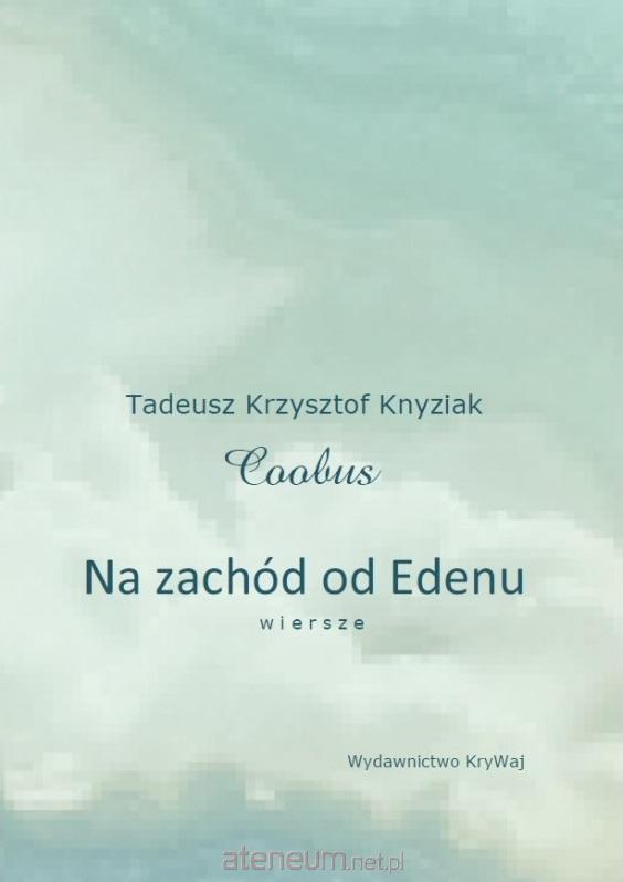 Na zachód od Edenu szósta autorska książka Tadeusza Krzysztofa Knyziaka z Warszawy autora piszącego pod pseudonimem Coobus. Całość składa się z trzech części: CZĘŚĆ I. Jesienny, CZĘŚĆ II. Morze pozornie czerwone, CZĘSĆ III. Poprzez znoszone szkła. Obecny zbiór wierszy autor zadedykował swojej żonie Ewie, z podziękowaniem za 50 lat wspólnego Edenu (1972 2022). Podobizny pani Ewy zrobione i opracowane przez autora zdobią strony książki nadając całości szczególny przekaz. Na końcowych stronach książki czytelnik ma możliwość bliższego poznania autora, który w tekście zatytułowanym Żebro Coobusa prowadzi dialog/wywiad sam z sobą. A tak w kilku zdaniach o autorze i jego pasji pisania pisze dwoje zaprzyjaźnionych z autorem osób:
