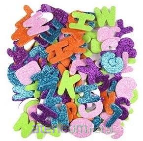 Brokatowe naklejki z pianki w kształcie liter, w różnych kolorach znakomicie wyzwalają dziecięcą aktywność twórczą wszelkiego rodzaju.