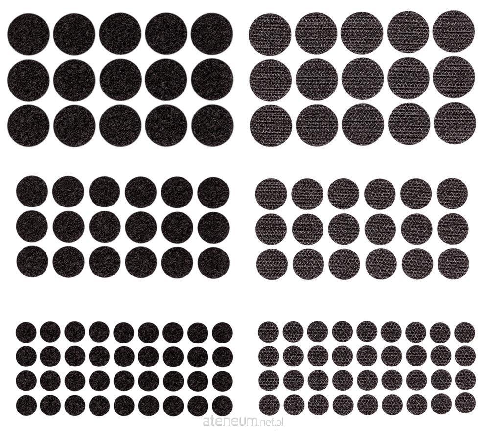 Rzep składa się z dwóch części - haczyka i pluszu. W opakowaniu znajdziesz 69 sztuk czarnych, okrągłych rzepów.