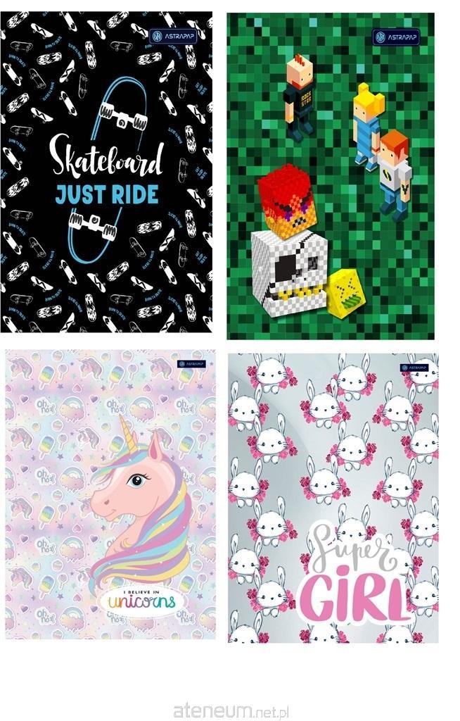 Mix wzorówCechy produktu:błyszcząca okładka z lakierem UV,miejsce na dane właściciela,format A5,liniatura: linia dwukolorowa,16 kartek o gramaturze 70g/m2,zaokrąglone rogi.
