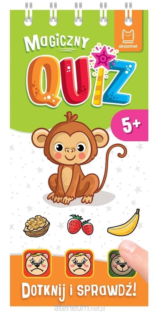 "Magiczny quiz" to doskonała zabawa dla dzieci. Magiczna farba zapewnia wielokrotną zabawę i zachęca dzieci do sprawdzania swojej wiedzy oraz poznawania świata. Czarne pola znikają i pojawiają się na nowo. Aby wskazać odpowiedź, należy delikatnie potrzeć pokryty farbą termiczną kwadracik przez około 5 sekund - pod wpływem ciepła pojawi się znaczek poprawnej lub błędnej odpowiedzi. W książce zamieszczonych jest 76 pytań obrazkowych wraz z odpowiedziami. Quiz to pomysł na udany prezent i interesującą naukę.