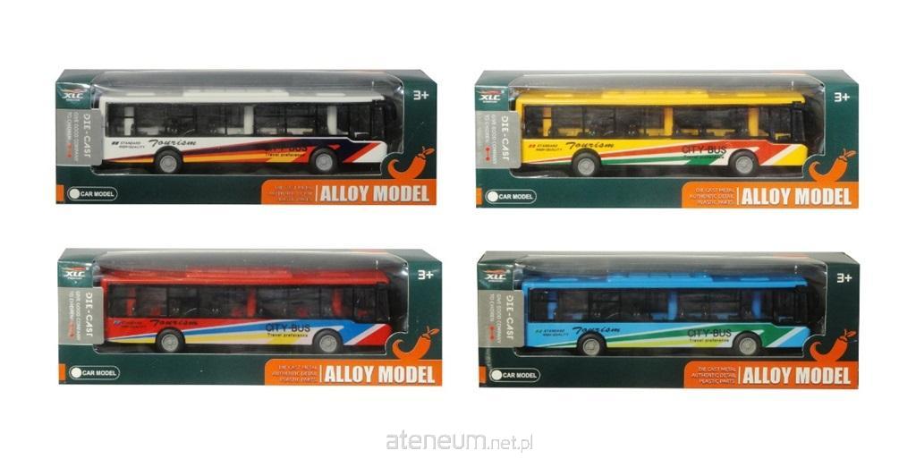 Metalowy autobus z plastikowymi elementami. Autobus z napędem friction. Produkt występuje w kilku wersjach kolorystycznych, wybierany losowo. Cena dotyczy jednej sztuki. Produkt przeznaczony dla dzieci od 3 lat. Podane wymiary są wymiarami opakowania.