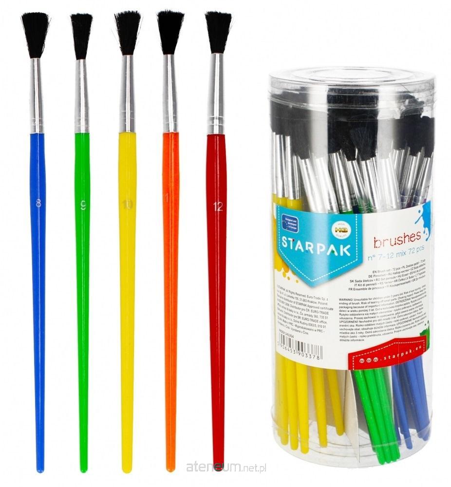 Zalety produktu Duży zestaw z kolekcji STARPAK składający się z 72 syntetycznych pędzli w różnych rozmiarach, kolorach, który z pewnością zaspokoi potrzeby małych artystów. W zestawie znajdują się miękkie i puszyste pędzle, idealne do akwareli i plakatówek, farb akrylowych i olejnych. Uchwyty pędzli są wykonane z trwałego tworzywa sztucznego zapewniającego komfortowe trzymanie w dłoni. Zapoznaj się również z innymi produktami Starpak dedykowanymi szkole! Zestaw przeznaczony dla dzieci w wieku: 3+.
