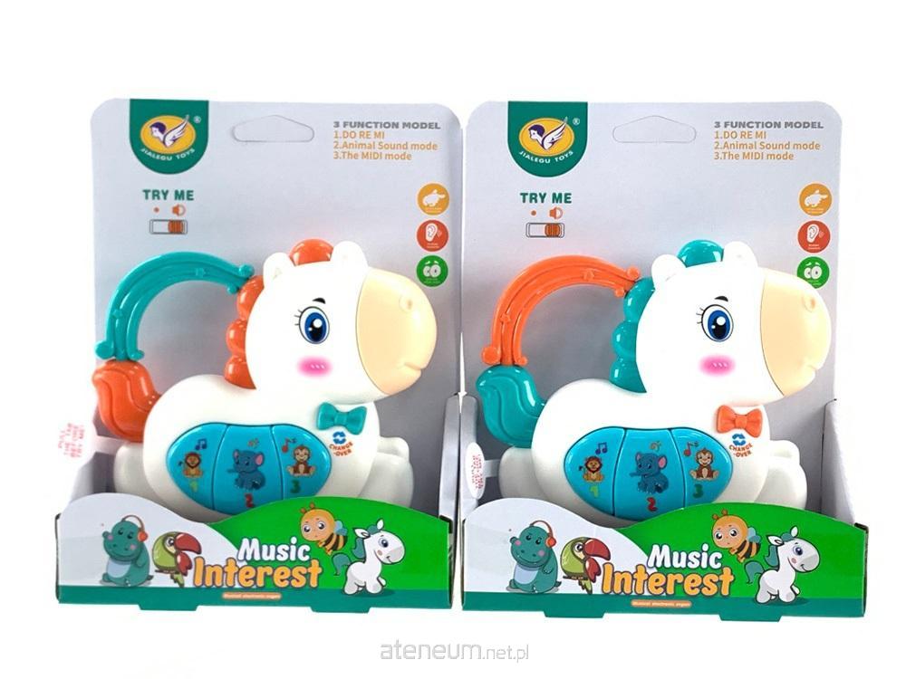 Zabawka występuje w dwóch wersjach kolorystycznych. Posiada efekty dźwiękowe: do, re, mi; odgłosy zwierząt. Możliwość ściszania lub zgłaśniania dźwięków Wymagane baterie - 2xAAA (dołączone).