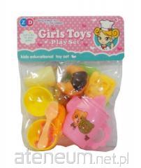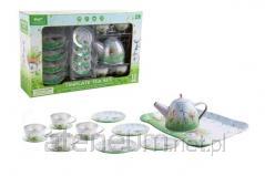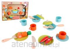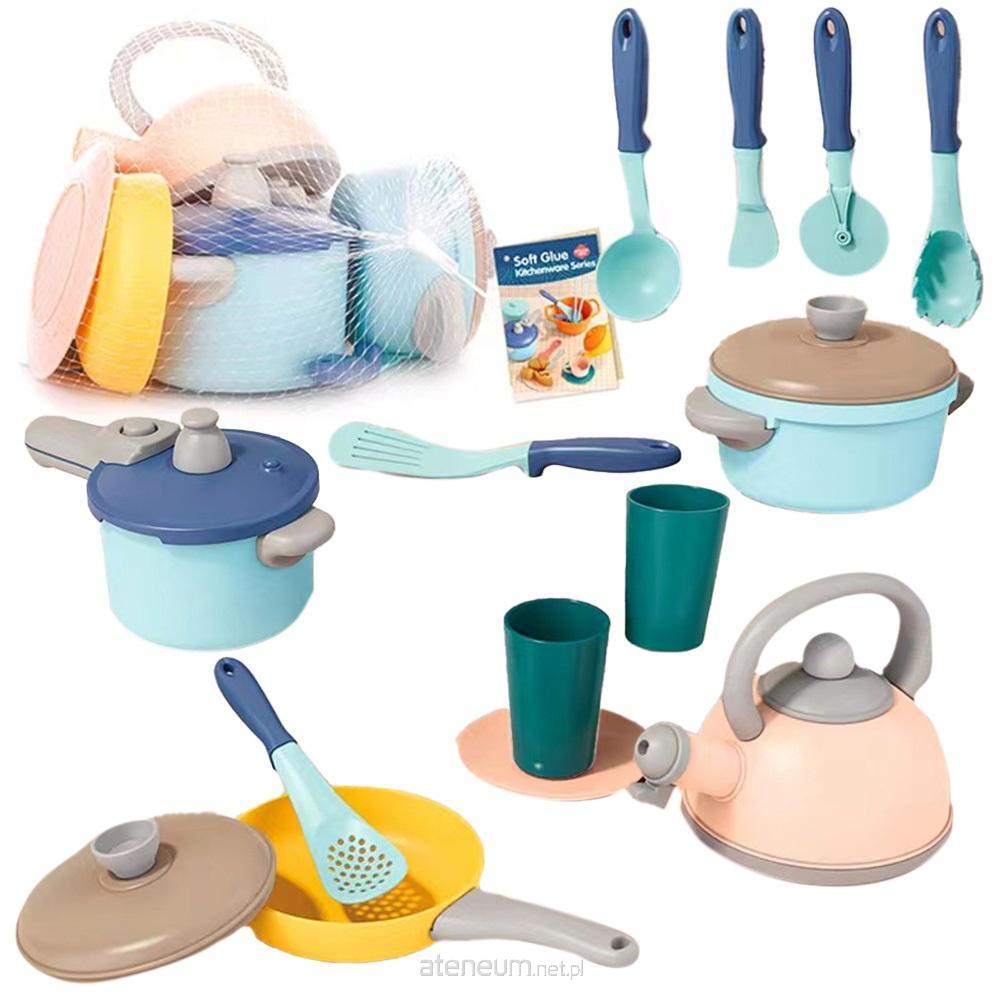 Zestaw naczyń zawiera 14 elementów: garnki z pokrywkami, czajniczek, szklanki i sztućce. Wymiary opakowania: 20 x 15 x 12 cm