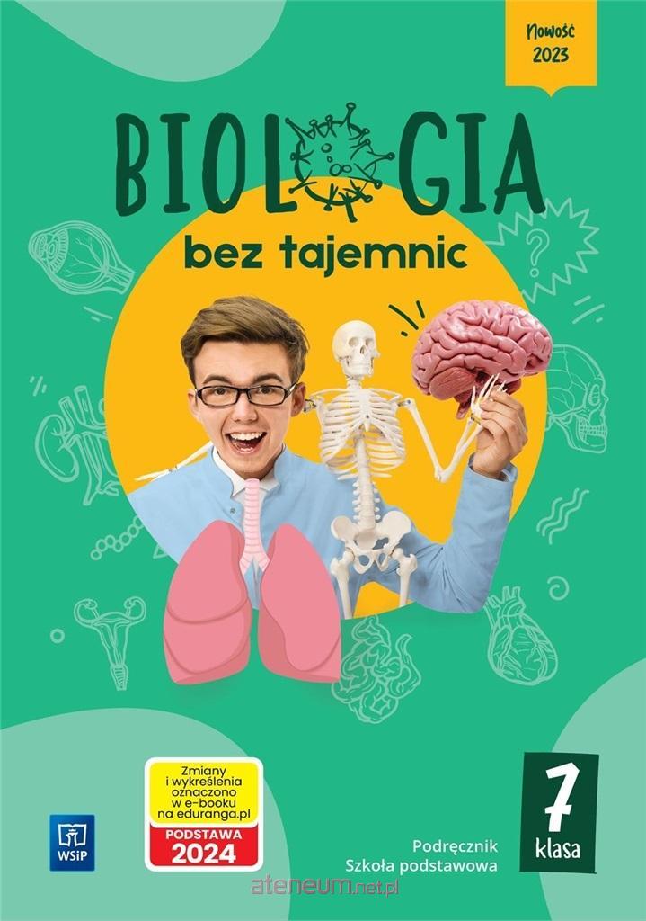 Podręcznik Biologia bez tajemnic dla uczniów klasa 7 szkoły podstawowej przedstawia biologię w sposób nowoczesny i aktualny. Złożone zagadnienia są zilustrowane szczegółowo opisanymi zdjęciami lub równaniami graficznymi. Podręcznik zmienia postrzeganie biologii, inspiruje do pogłębiania wiedzy, pokazuje praktyczne wykorzystanie wiadomości.