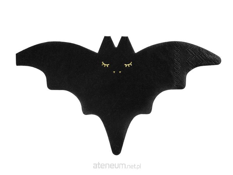"Serwetki papierowe Nietoperz w kolorze czarnym ze złotym metalizowanym nadrukiem, wymiary po rozłożeniu ok. 32 x 18 cm, wymiary po złożeniu ok. 16 x 9 cm. (1 op. / 20 szt.)"