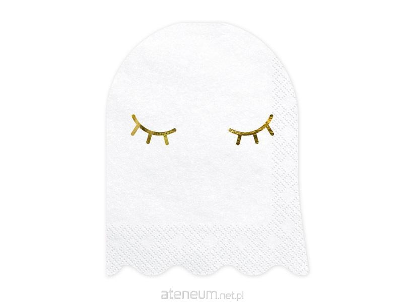 "Serwetki papierowe Duch w kolorze białym ze złotym metalizowanym nadrukiem, wymiary po rozłożeniu ok. 22.5 x 28 cm, wymiary po złożeniu ok. 11 x 14 cm. (1 op. / 20 szt.)"