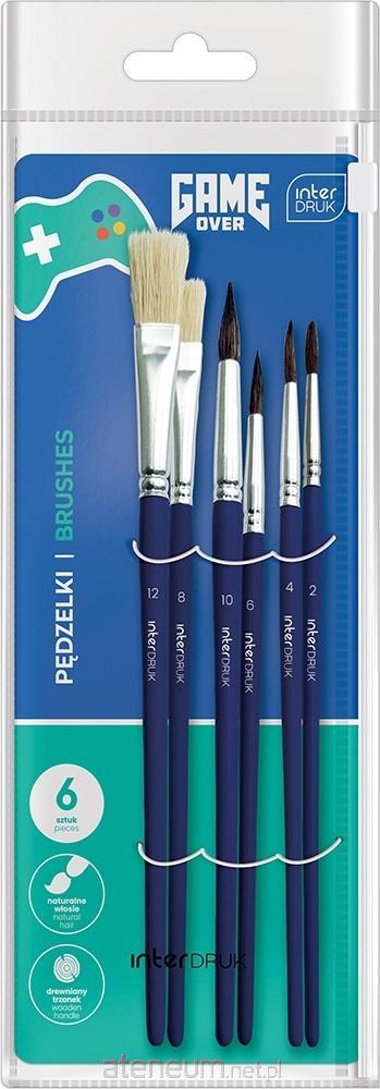 Zestaw 6 drewnianych pędzelków o różnych szerokościach i kształtach końcówek. Praktyczne etui z zamknięciem strunowym. Naturalne włosie. Trzonek z malowanego drewna.