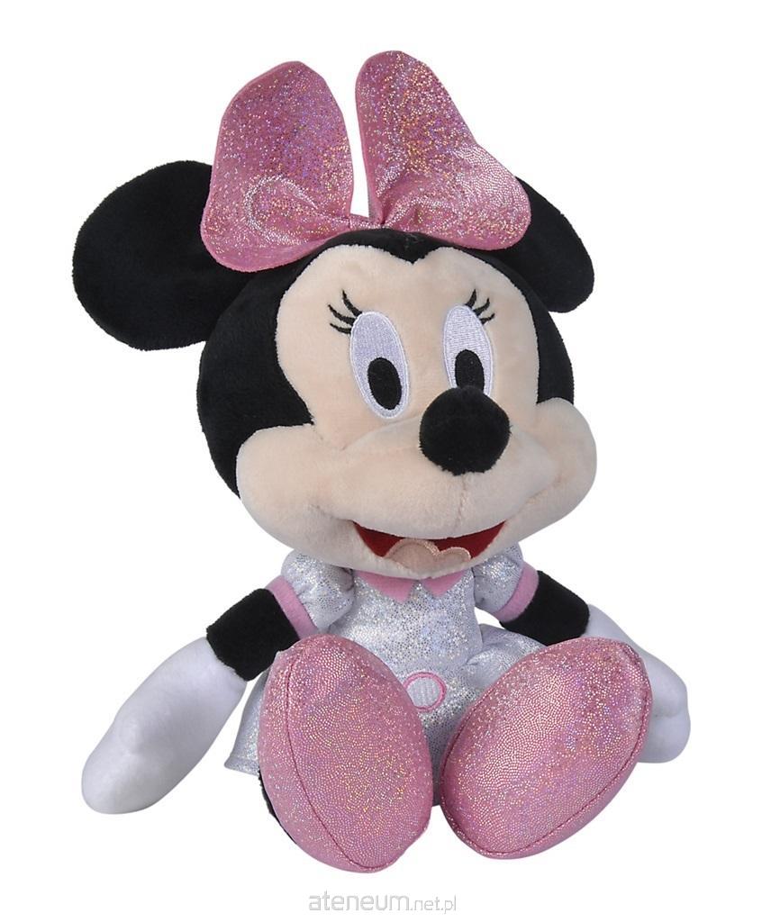 Pluszowa maskotka Minnie w błyszczącej sukience, butach i kokardą.