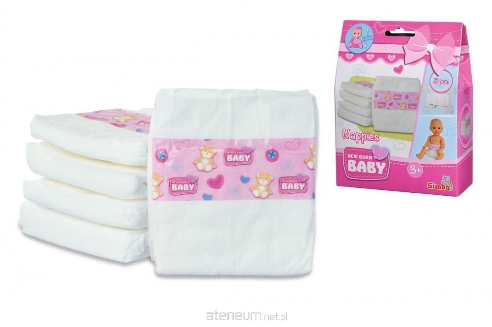 Zestaw 5 pieluszek dla lalek o wysokości 38-43 cm. Zestaw zapakowany w