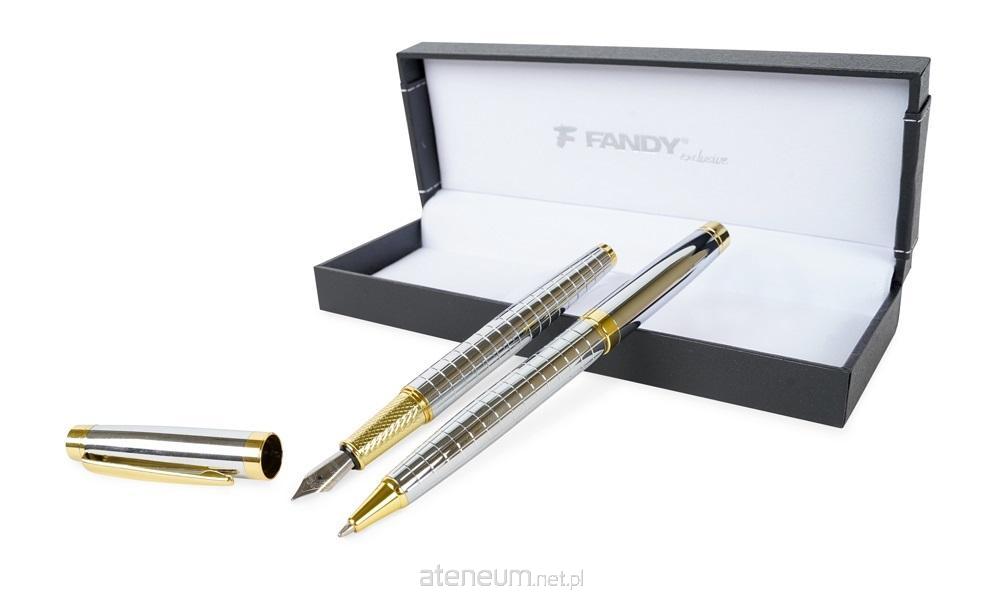 zestaw metalowego długopisu i pióra wiecznego, długopis mechanizm obrotowy, pióro wieczne z wieczkiem, wymienny wkład F-Parker, grubość linii 0,7 mm (długopis), wkłady atramentowe (pióro wieczne), niebieski kolor tuszu, luksusowe pudełko